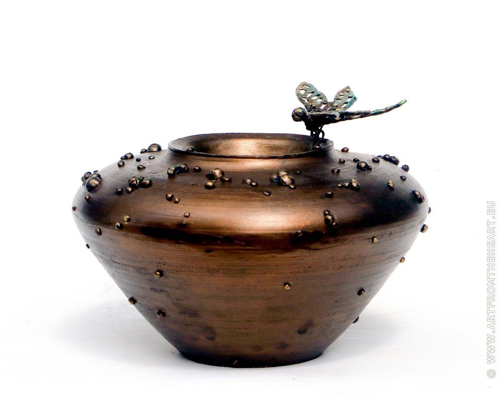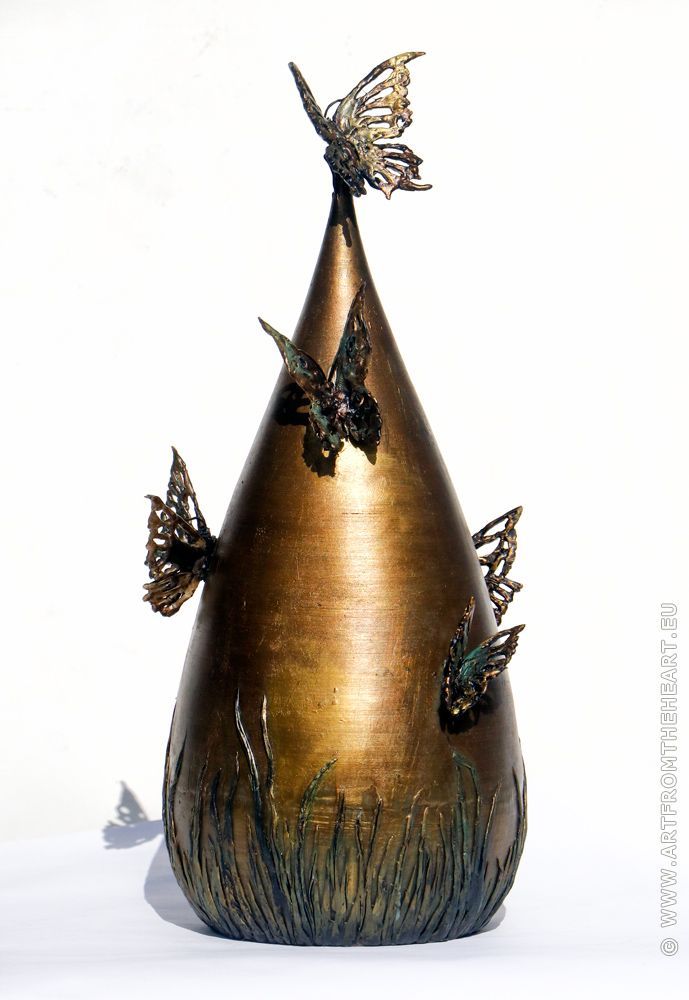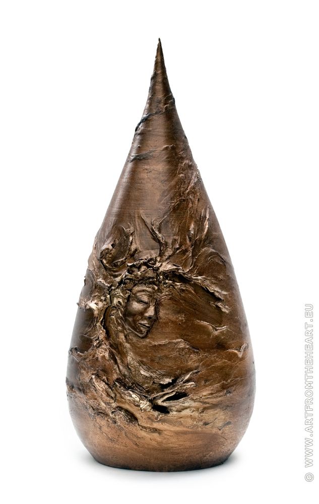 Dit zijn unieke, nog af te gieten bronsontwerpen in was. Deze kunnen in overleg nog naar wens worden aanpast. (Bijv. om als urn te dienen met toevoeging van bijv. naam, data en een afsluitbaar ascompartiment).